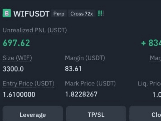 * Titolo: "Vittoria Enorme! 834% ROI su Trading WIFUSDT!"