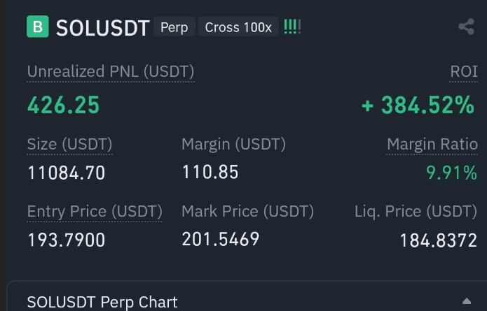 * Corpo: "Analizziamo il mio recente scambio perpetuo SOLUSDT. Sono entrato a 193,7900 USDT e ho cavalcato l'onda fino al prezzo attuale di 201,5469 USDT. Il mio rapporto di margine è attualmente al 9,91%, il che significa che ho un buon margine contro potenziali perdite. Quali sono le tue opinioni sul mercato attuale di SOLUSDT? #CryptoTrading #PerpetualSwaps #AnalisiTecnica"