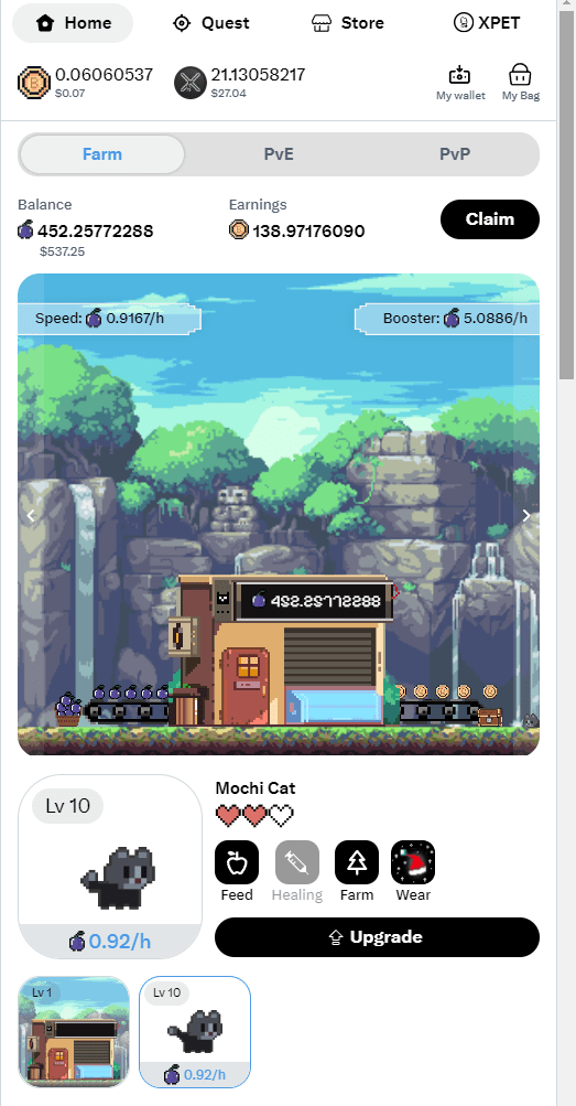 Dinamica di gioco: potenziando gli animali domestici per produrre mirtilli, la fabbrica convertirà i mirtilli prodotti in gettoni BEPT che possono essere venduti direttamente su DEX. Gli animali domestici possono essere intesi come macchine minerarie. Tuttavia, questa produzione di mirtilli può essere rilasciata in gettoni solo aggiornando la fabbrica. Più alto è il livello della fabbrica, più velocemente verrà rilasciato. 1. La fabbrica richiede un animale domestico di livello 7 prima di poter essere aperta, quindi prima devi aggiornare un animale domestico. Raggiungi il livello 7 (costa 465 bpet). Fai clic su Aggiorna nella pagina del gioco fino a raggiungere il livello 7. 2. Dopo che il tuo animale domestico ha raggiunto il livello 7, puoi iniziare ad aggiornare la tua fabbrica.