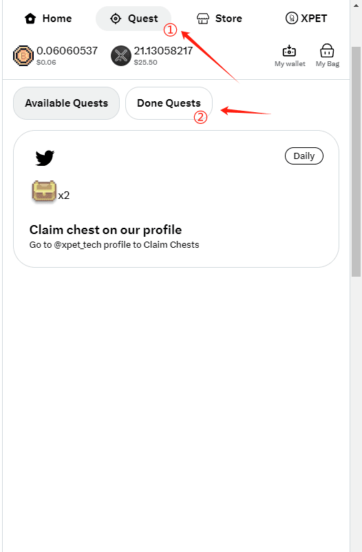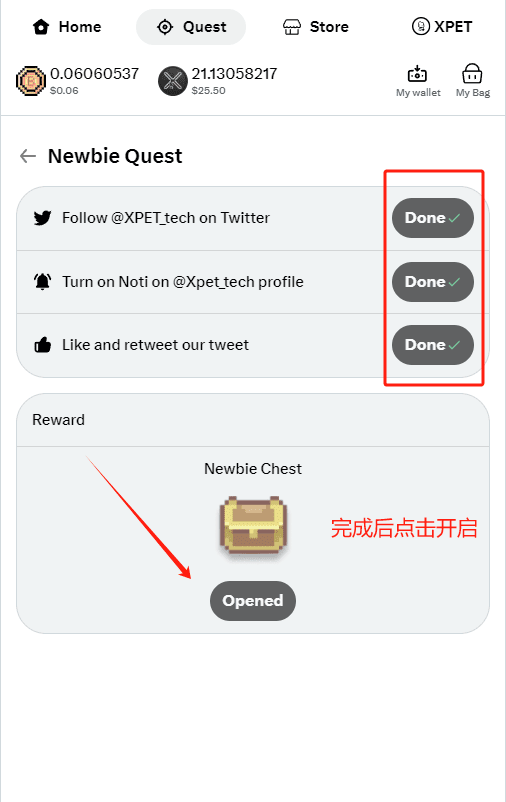 Inoltre, c'è una scatola del tesoro da aprire. Se sei un principiante, c'è una scatola una tantum. Puoi sbloccarla seguendo il progetto, ritwittando e aprendo la campanella. Successivamente, puoi aprire due casse del tesoro ogni giorno. Le scatole possono distribuire gettoni bpet o del cibo. Se vuoi aprire la cassa del tesoro, devi andare su alcuni tweet con casse del tesoro e commentare un post con altro di 16 parole e "xpet".