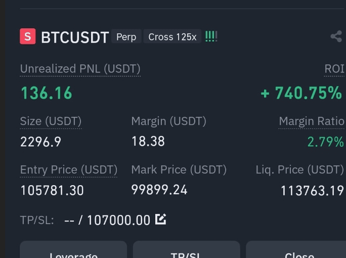 Titolo: Aggiornamento Trade BTCUSDT Perp: Cavalcando Alto con un ROI del 740.75%!