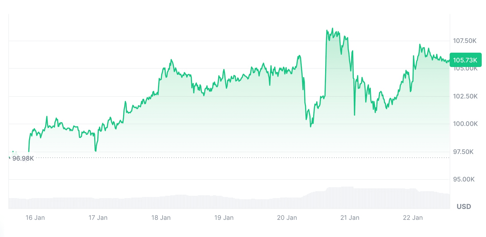 essersi rimbalzato da $98.937 a oltre $107.000 il 21 gennaio, ha detto Thielen nel rapporto di mercato.