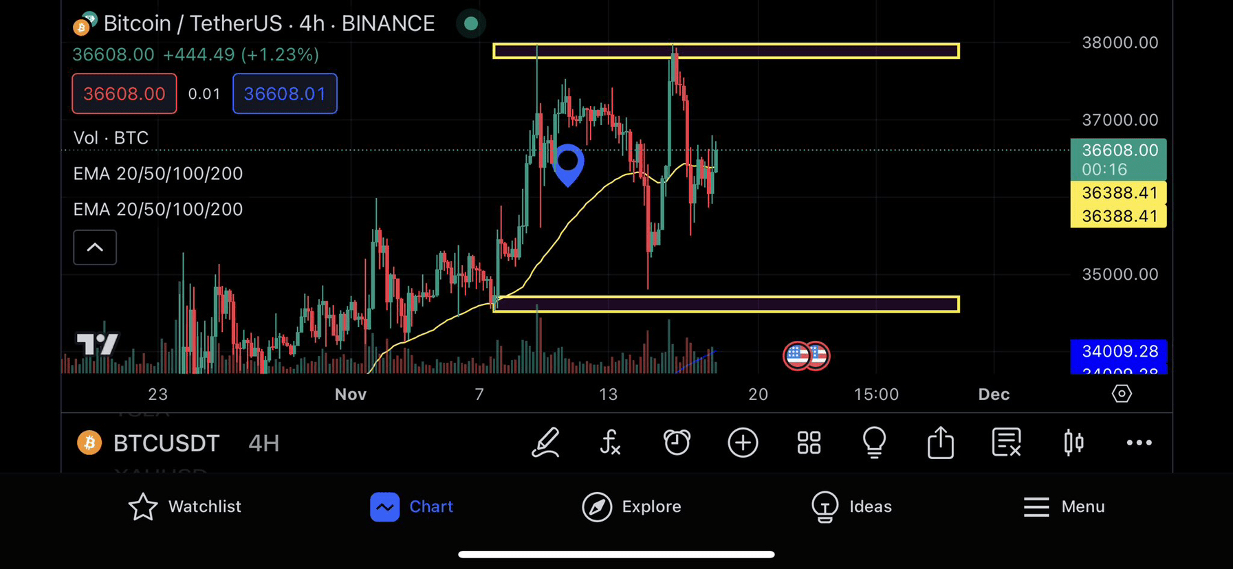 Oggi, BTC sul small frame M30 è sostanzialmente ancora lateralmente nell’area 35k5-38k.
