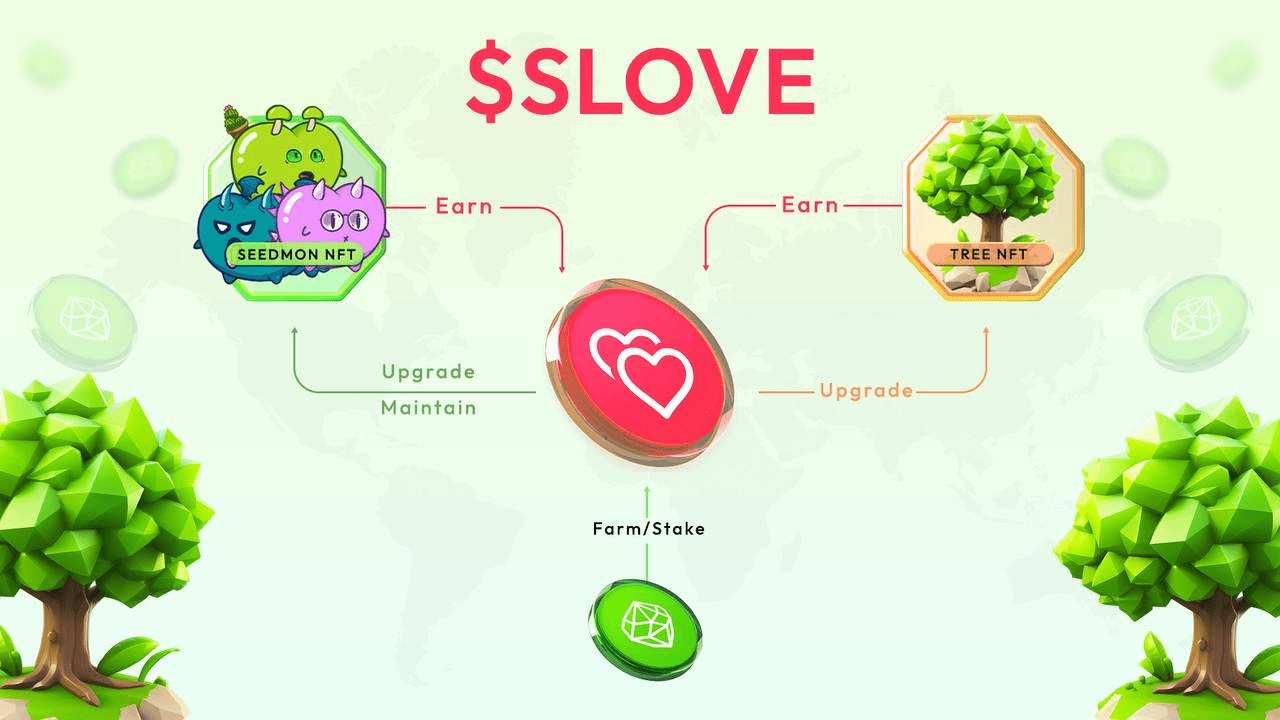 Guadagno: Gli utenti guadagnano $SLOVE interagendo con il mondo di gioco, come interagire con gli Alberi SEED sulla mappa.