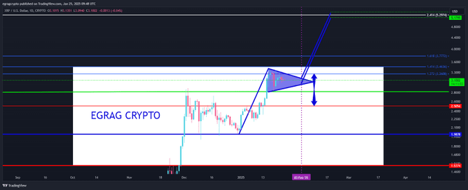 Se il breakout si verifica come previsto, XRP potrebbe vedere prezzi oscillanti tra $5.1 e $5.4, a seconda della traiettoria del pennone.