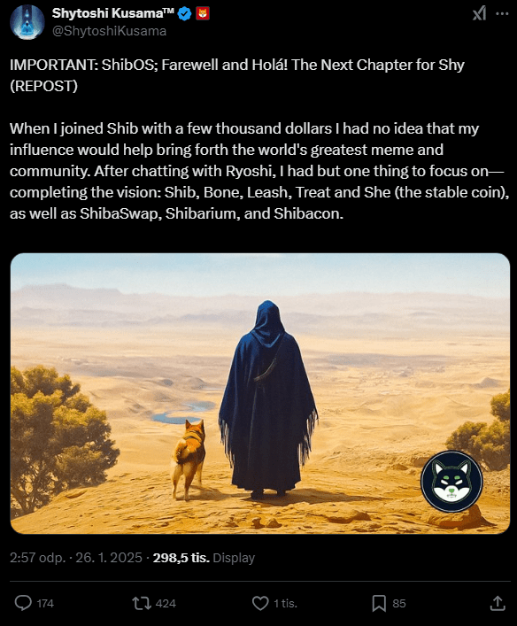 Shytoshi Kusama, una figura prominente nell'ecosistema Shiba Inu, ha annunciato un cambiamento significativo nelle sue responsabilità.