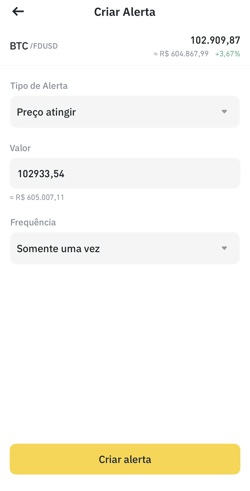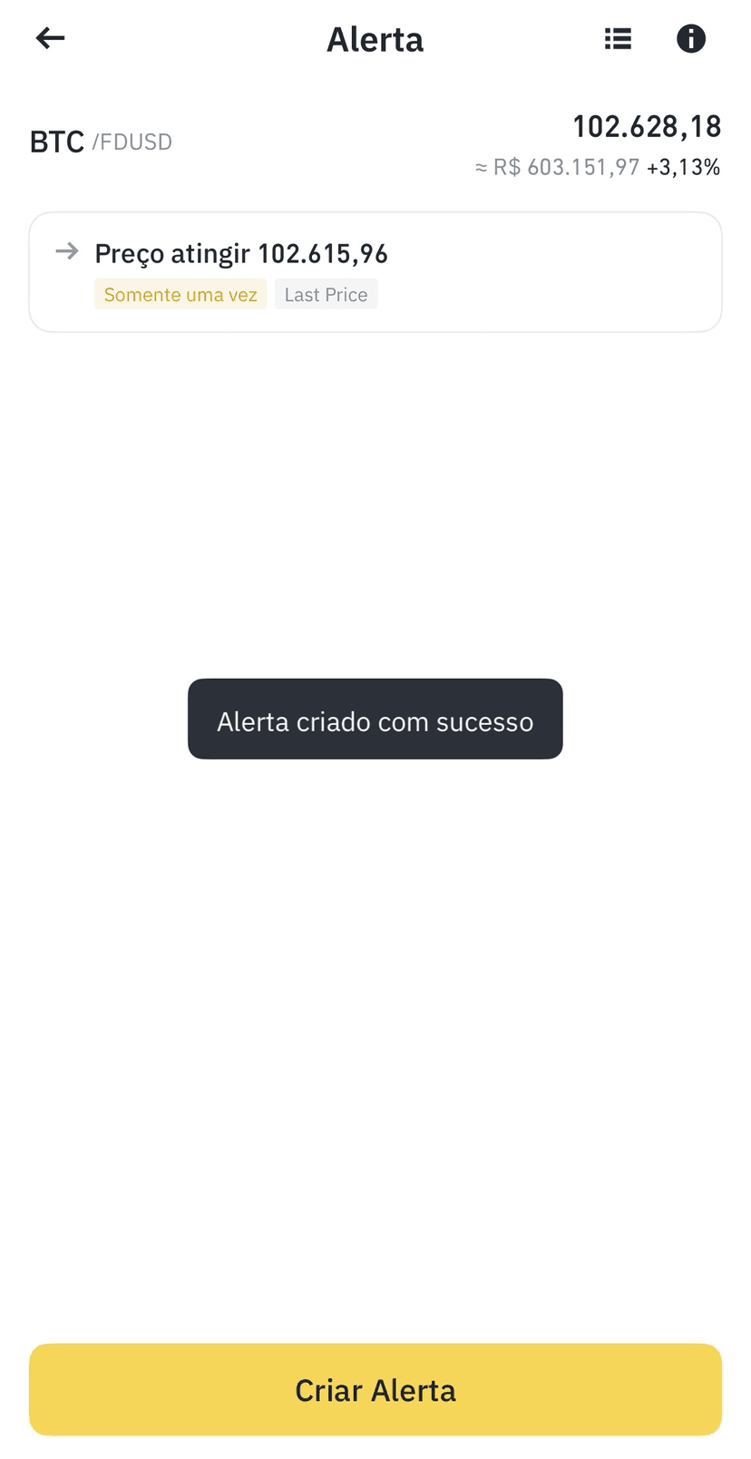 Pronto! Ora hai creato il tuo avviso e non appena raggiungerà il valore stimato, la notifica verrà inviata!