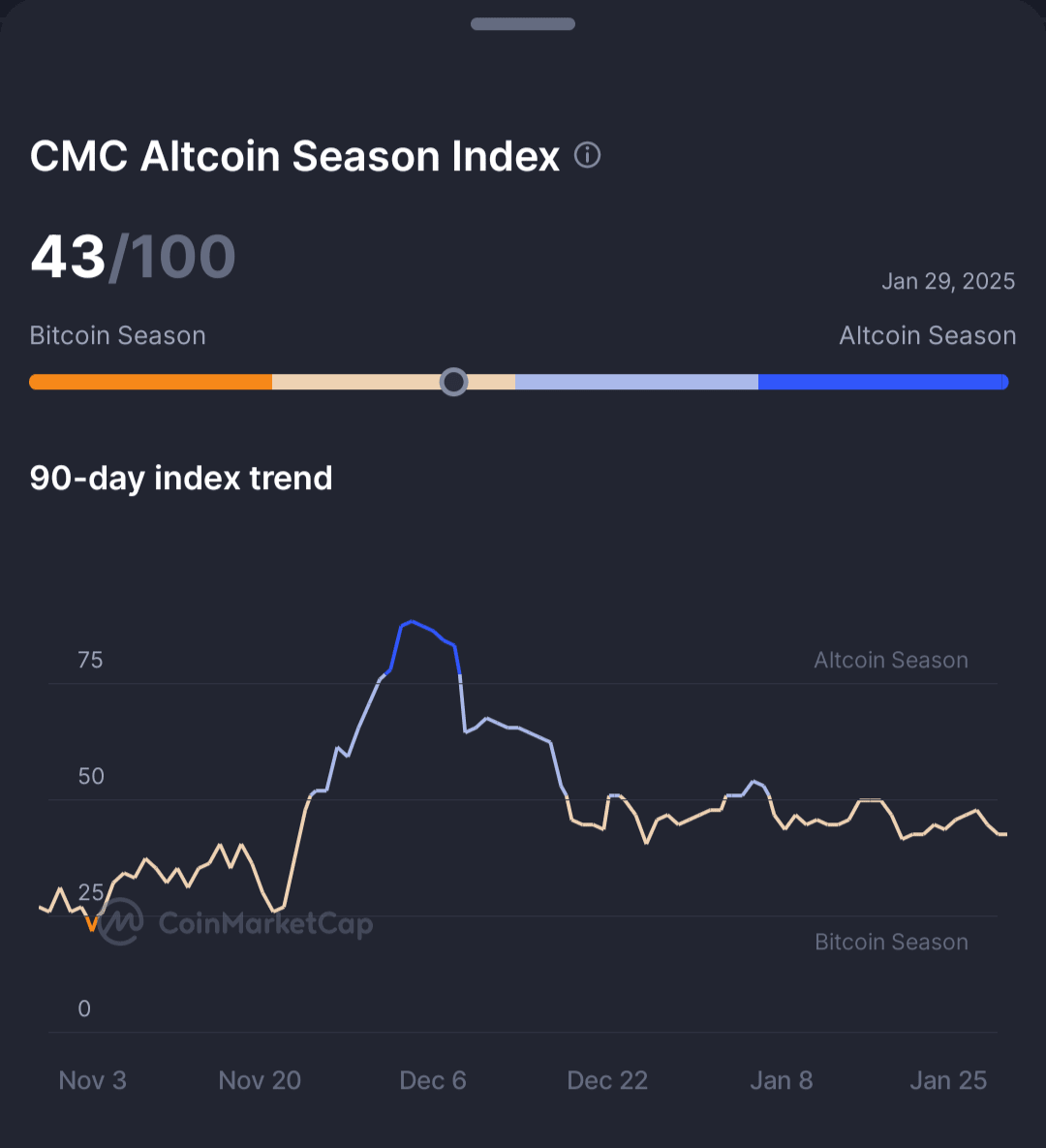 L'Indice della Stagione Altcoin attualmente è a 43 !!