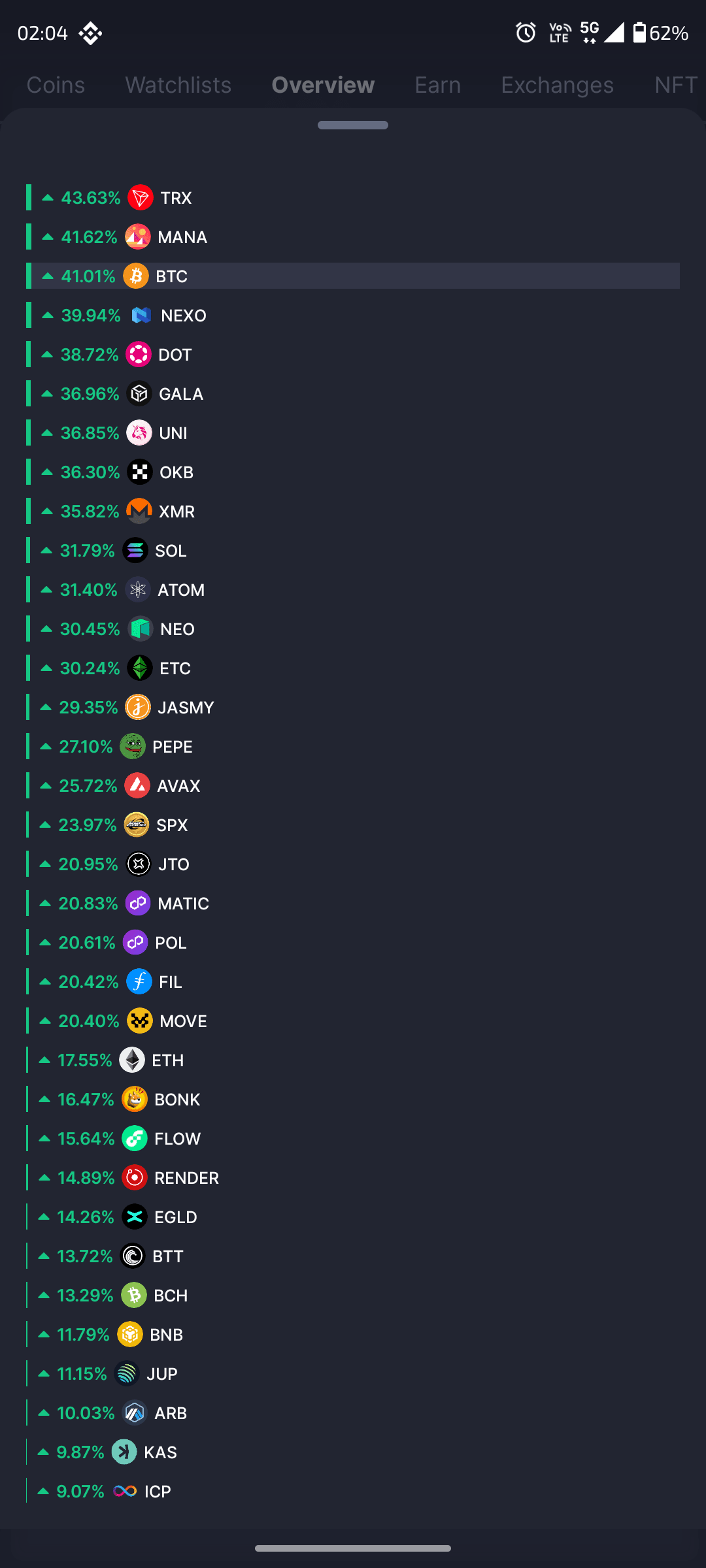 Se guardi attentamente la percentuale di guadagno degli altri token che sono sotto BTC, c'è pochissima differenza e solo un paio di giorni di crescita possono portarlo a superare $BTC !!