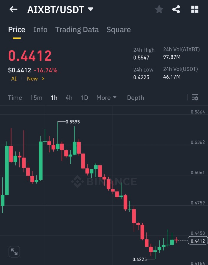 ? Panoramica del Mercato: AIXBT/USDT ha subito un calo del -16.74% a $0.4412, dopo un massimo di 24 ore di $0.5547 e un minimo di $0.4225. Il mercato sta mostrando segni di volatilità e ritracciamento, presentando una possibile opportunità di acquisto per coloro che sono disposti a sfruttare le fluttuazioni del mercato.