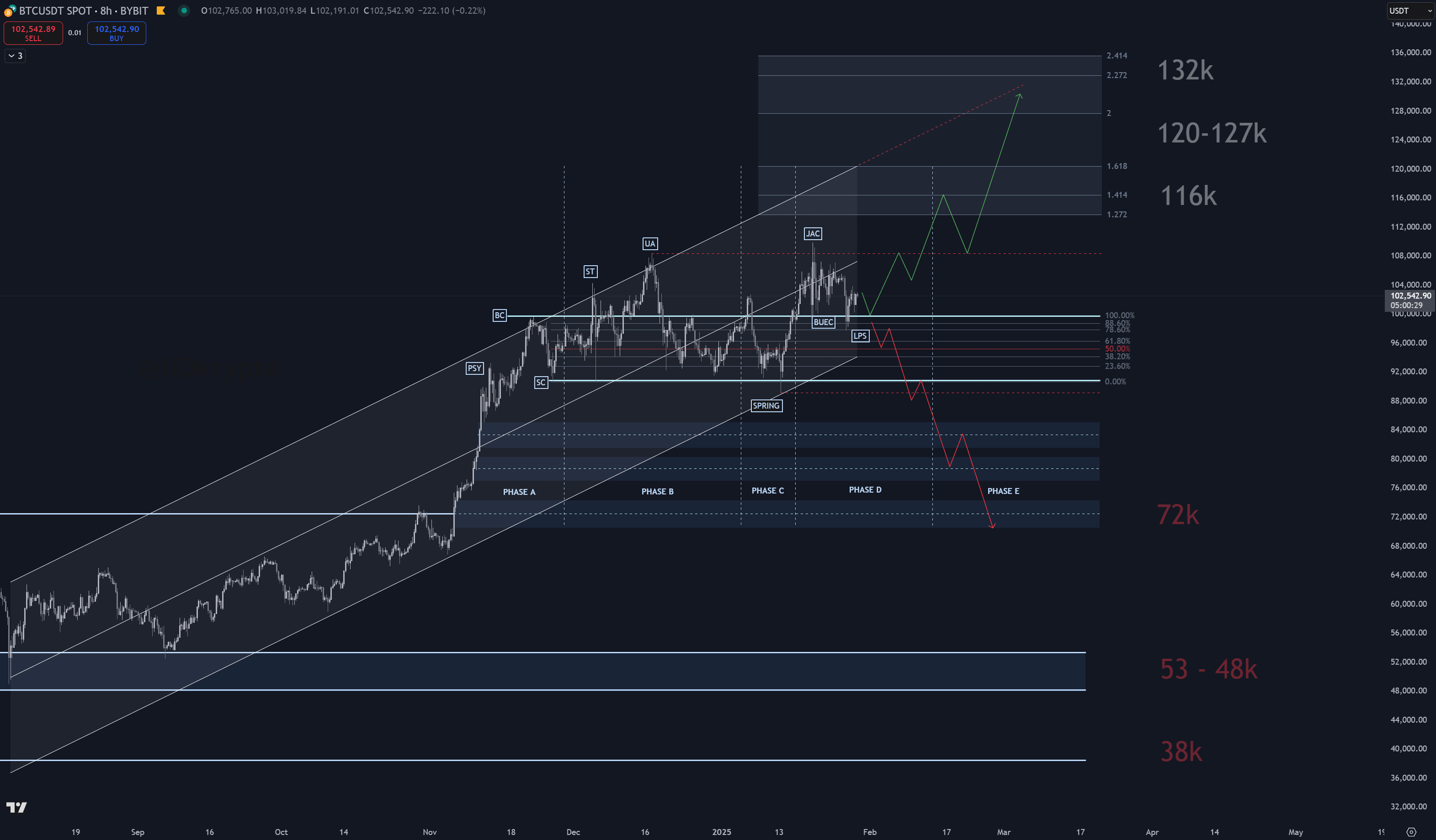Se Bitcoin dovesse tornare in modo sostenibile in un intervallo e mostrare segni di debolezza, dobbiamo accettare la possibilità che questo potrebbe essere una fase di distribuzione e che Bitcoin potrebbe aver invertito la sua tendenza. 📉