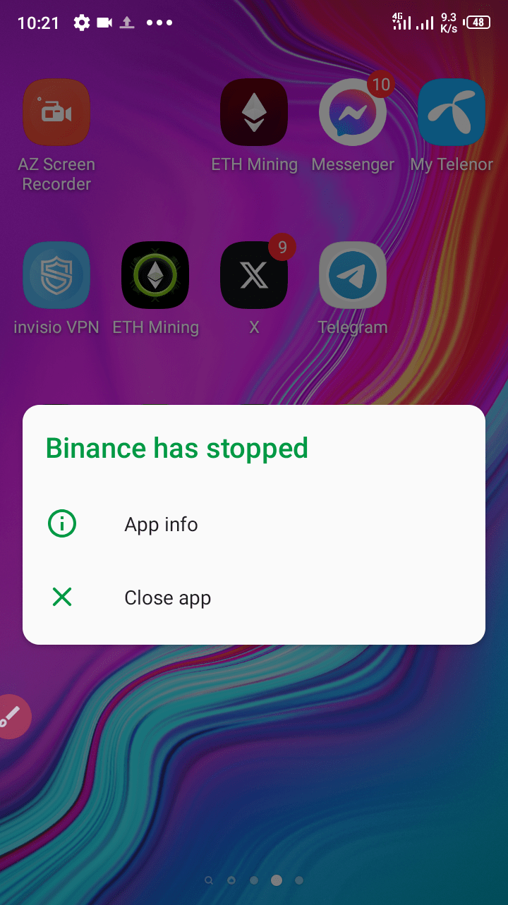 #errormessage Amico, sono arrabbiato per il problema di errore dell'app che ho riscontrato negli ultimi mesi. Quando apro Reward Hub e si verifica un errore (qualcosa è andato storto) e l'icona di pagamento si verifica un errore dell'app (l'app Binance si è interrotta). Come puoi vedere nelle immagini, ho completato la procedura per bloccare l'errore (disinstallazione, installazione, cancellazione della cache, cancellazione dell'archiviazione e riavvio), ma è inutile e inutile. Qualcuno può aiutarmi a capire cosa fare dopo? Ho cambiato rete, ma il problema è stato risolto? Qualcuno può aiutarmi a risolvere il mio problema????????