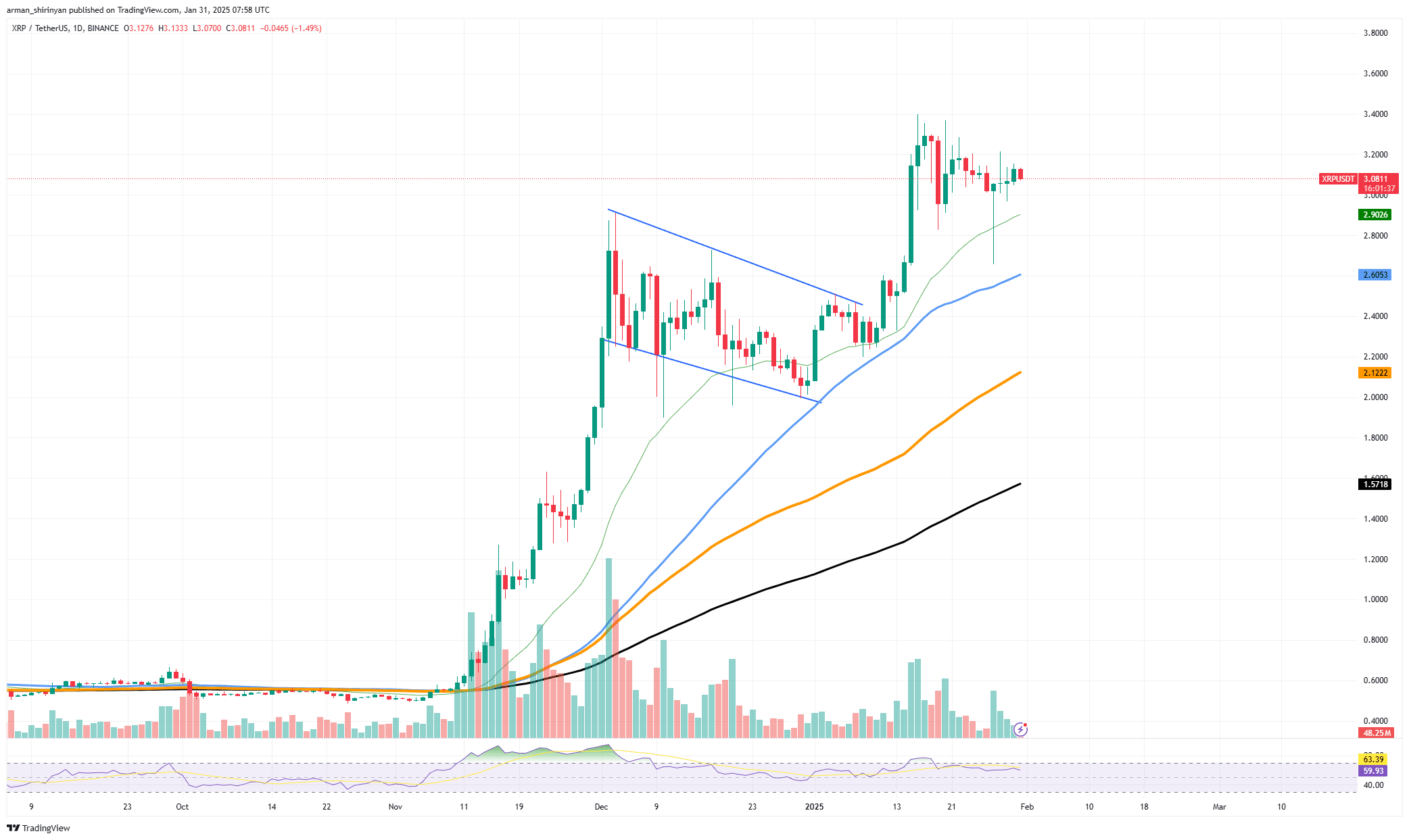 Tuttavia, il divario tra questi livelli di supporto e il prezzo attuale solleva preoccupazioni. Poiché XRP non riesce a mantenersi sopra i $2,12, che è la 100 EMA, una caduta brusca sotto i $3,00 potrebbe portare a una correzione molto più profonda. Questo scenario è più probabile a causa del calo dei volumi e dell'aumento della pressione di vendita. I tori sono stati delusi dall'incapacità recente di XRP di superare i $3,30. Ora il prezzo rischia di rompersi, poiché manca di slancio per aumentare.