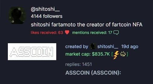 💨 Il Branding Perfetto – Diamo un'occhiata alla realtà—ASSCOIN è oro dei meme. Solo il nome può alimentare un movimento virale.