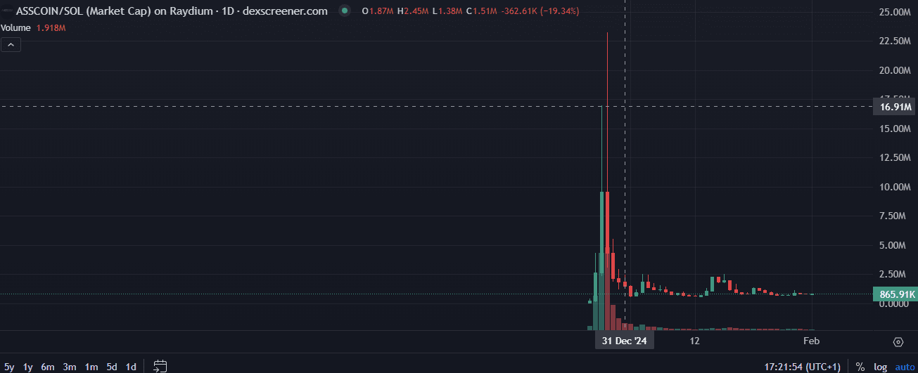 ASSCOIN, lanciato 1,5 mesi fa dallo stesso sviluppatore dietro Fartcoin, sta guadagnando silenziosamente slancio. Se ti sei perso BONK o WIF, questa potrebbe essere la tua seconda possibilità.