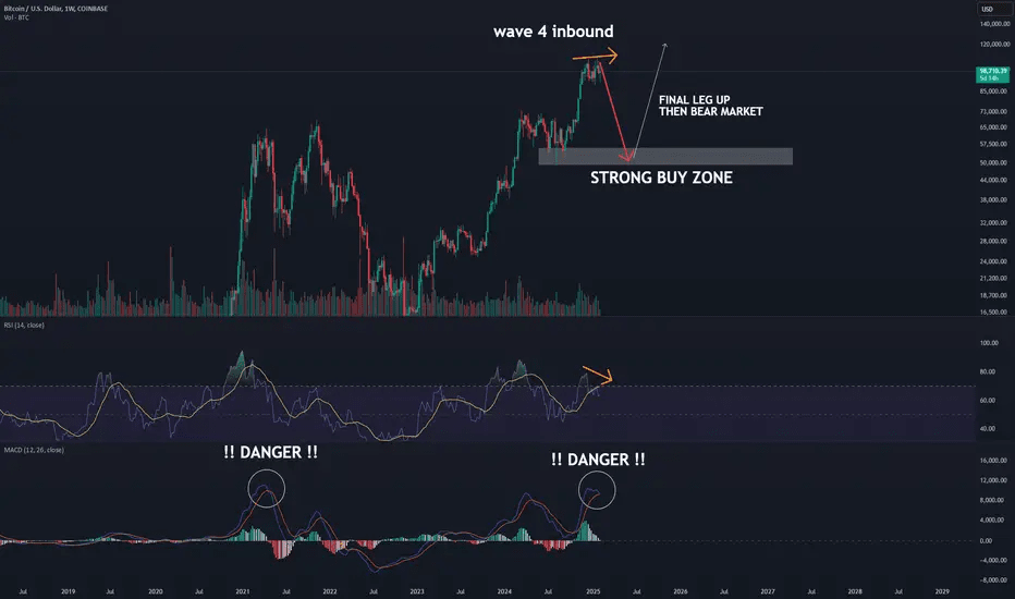 Aspettate, tori! 🐂 Mentre siamo ancora in un trend rialzista a lungo termine, c'è una potenziale nube temporalesca all'orizzonte: l'onda 4. 🌊 Questa onda correttiva può essere una vera guastafeste, portando cali inaspettati e scuotendo anche i più esperti hodler. 😱