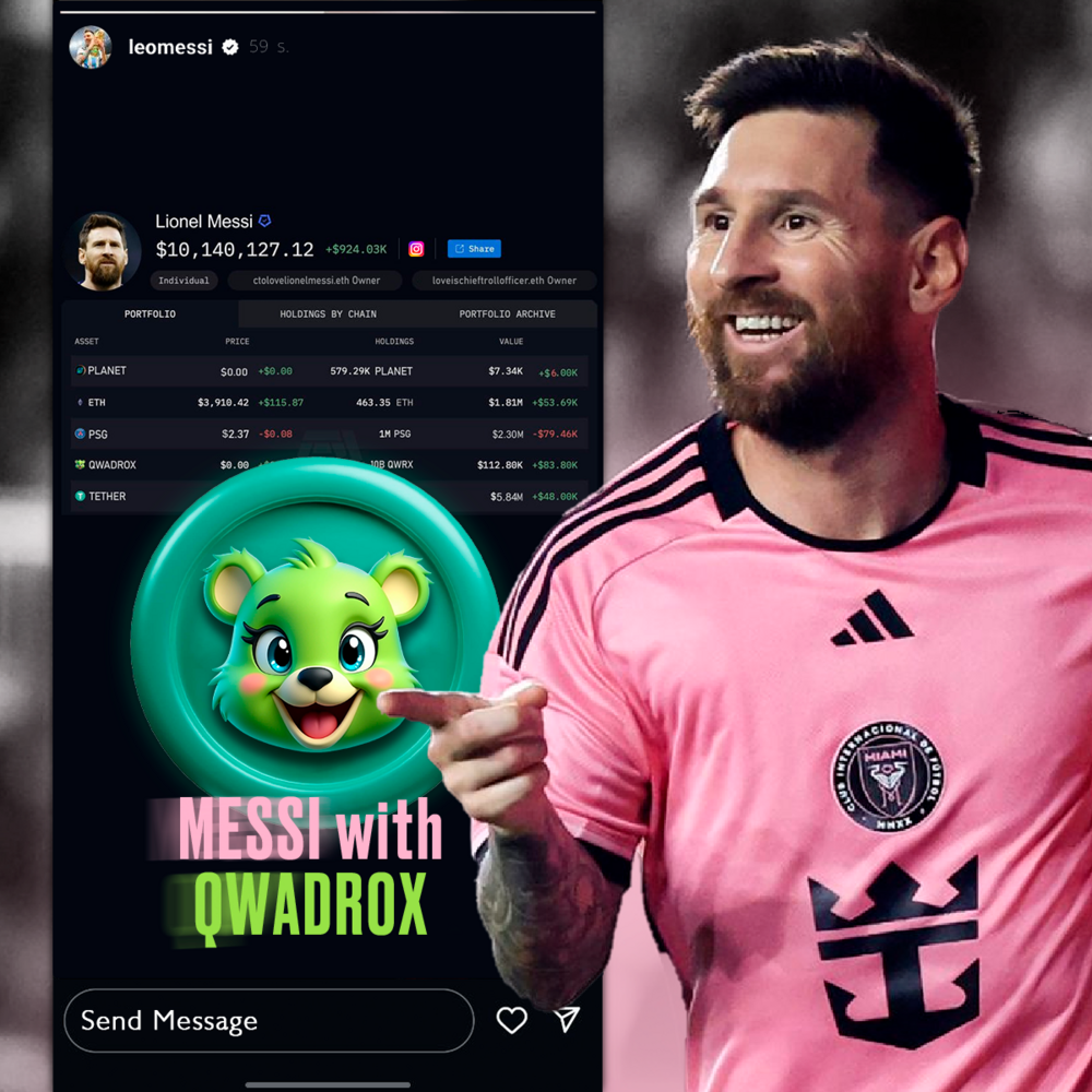 Una delle recenti acquisizioni di Messi è stata la moneta Qwadrox (QWRX), annunciata sul suo account Instagram il 18 dicembre 2024, ma il post è stato cancellato circa 10 minuti dopo la sua pubblicazione. Forse non è ancora giunto il momento per una campagna pubblicitaria su larga scala. Ma alcuni utenti sono riusciti a catturare uno screenshot della storia. Grazie alla trasparenza della blockchain è possibile scoprire quali progetti sono stati acquistati e quali profitti genera il portafoglio.