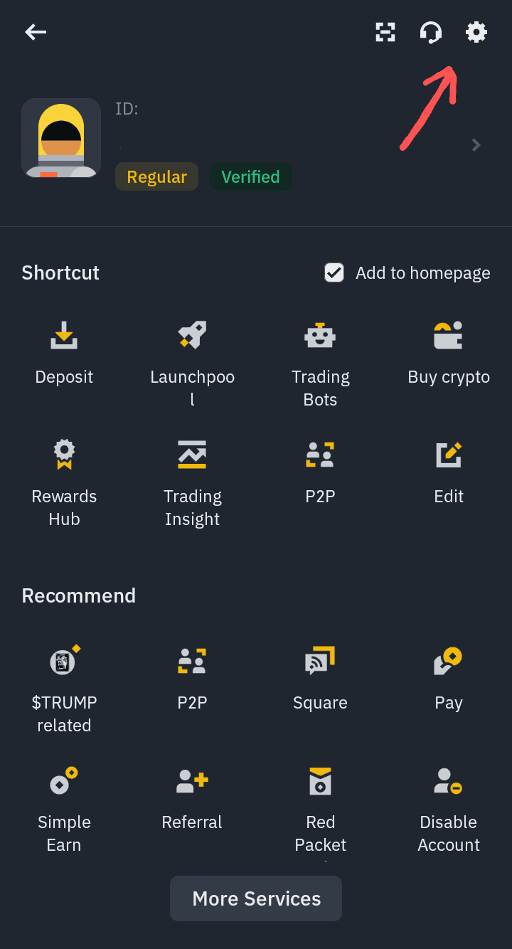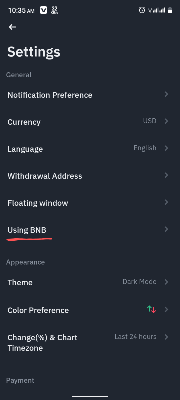 La prima parte di questa domanda riguarda lo sconto sulle commissioni di trading; se sei un possessore di BNB, puoi ottenere uno sconto del 25% sulle commissioni di trading spot e del 10% sul trading future nell'exchange di Binance. Vai alla homepage dell'app di Binance e fai clic nell'angolo in alto a sinistra sul logo di Binance come mostrato nell'immagine.