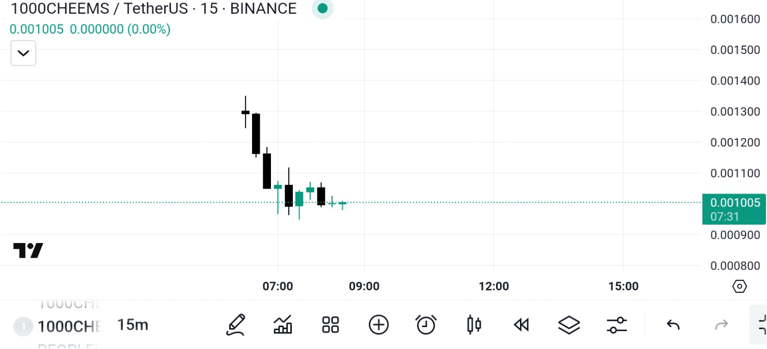 $1000CHEEMS è stato lanciato 3 ore fa anche sul mercato spot, prima era disponibile solo sul trading futures e ora è disponibile su entrambi, ma ti consiglio di non comprare 1000CHEEMS.