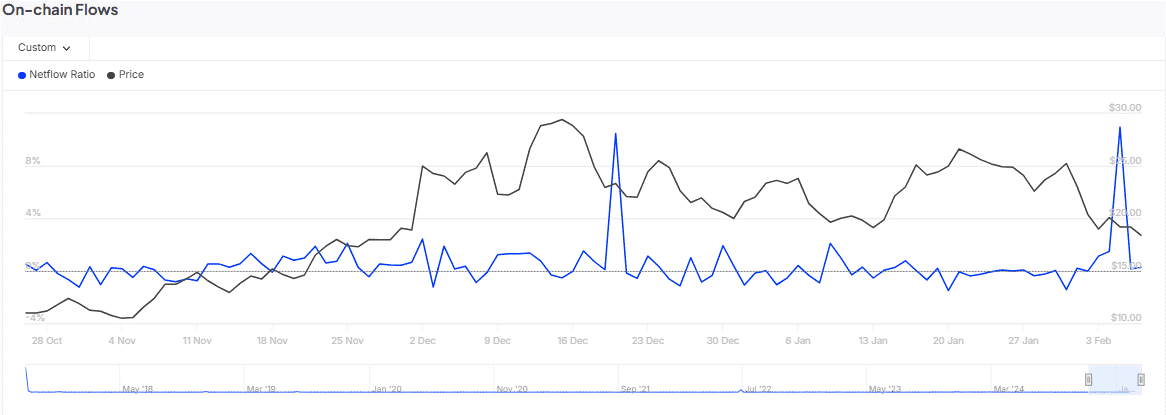 Tuttavia, sempre secondo l'indicatore IOMAP, LINK potrebbe scendere nell'area di domanda tra 14,27 e 16,65 dollari, dove ci sono 152 milioni di ordini di acquisto da 72.890 indirizzi, creando sufficiente slancio per affrontare la pressione di vendita.