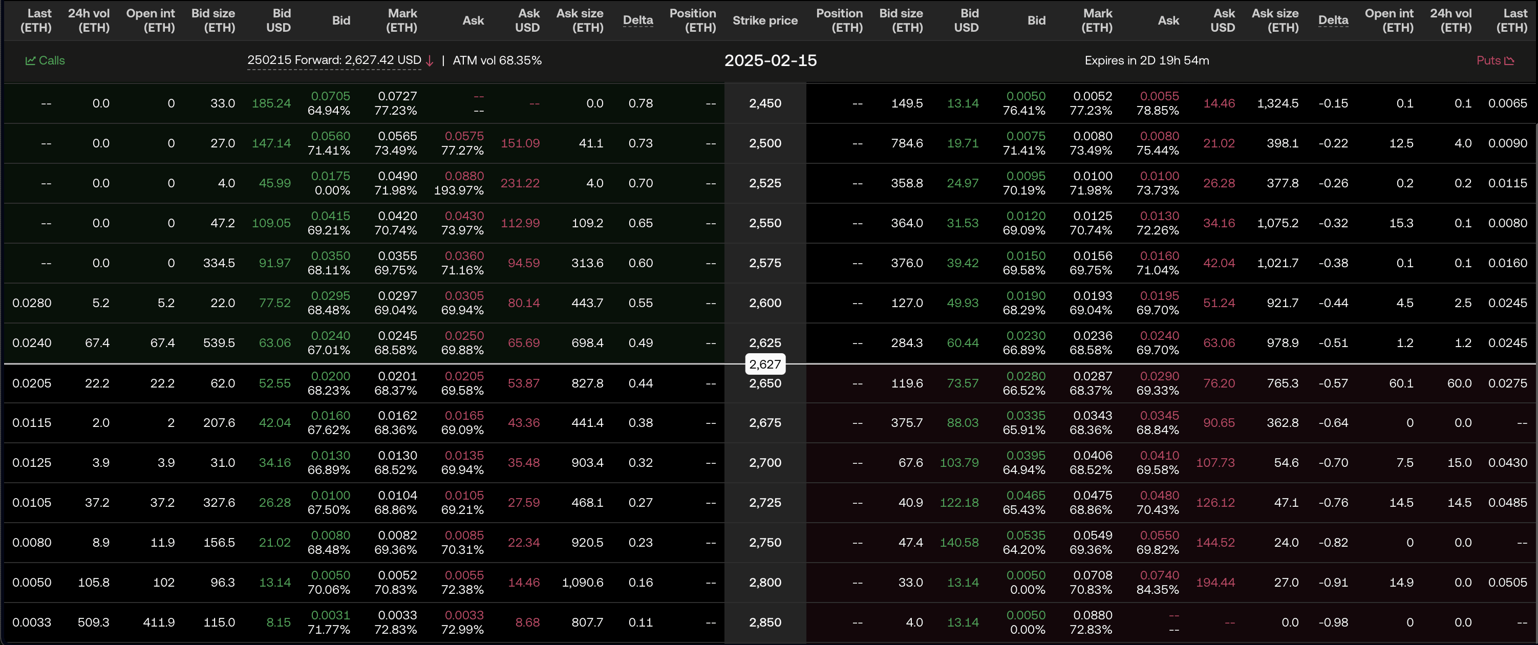 💰 15 Feb: Call 2450 (14.5$) + Put 2800 (14.5$)
