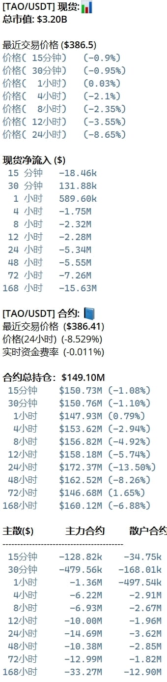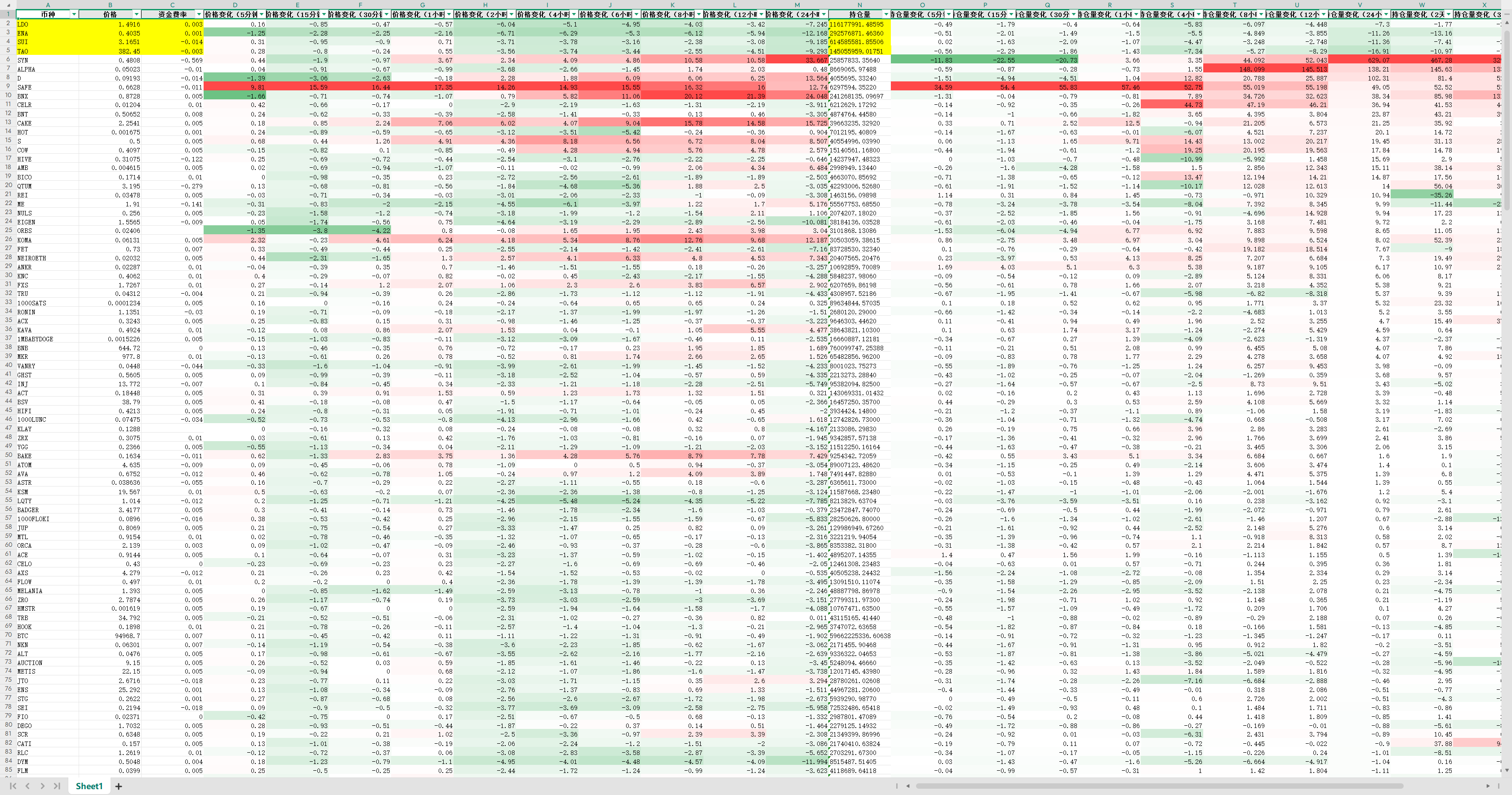 使用自己研发的表格对空气币进行筛选,因为大盘处于看跌,空气币的市场我也是偏悲观,从合约的持仓看,sui 和tao更具有潜力,4小时看还有一波跌势。