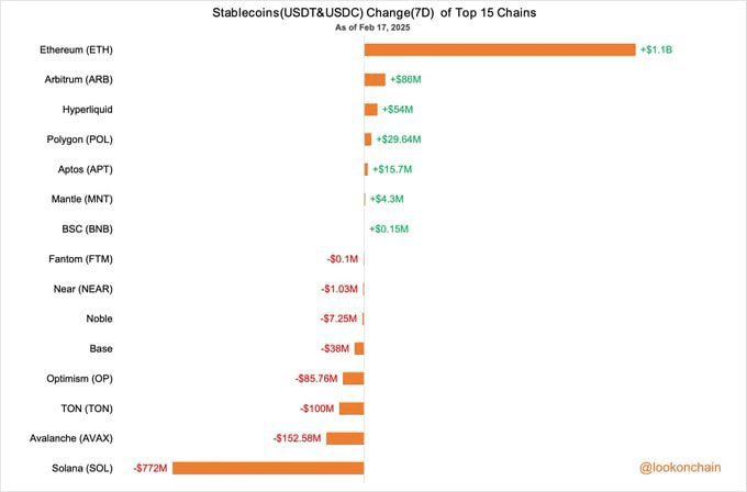 D'altro canto, *Solana (SOL)* ha visto una *diminuzione di 772 milioni* nelle partecipazioni di stablecoin. È un *grande calo*, e molti si stanno chiedendo cosa stia succedendo con le *balene di Solana*. Stanno trasferendo i loro fondi da Solana verso Ethereum? 🤔