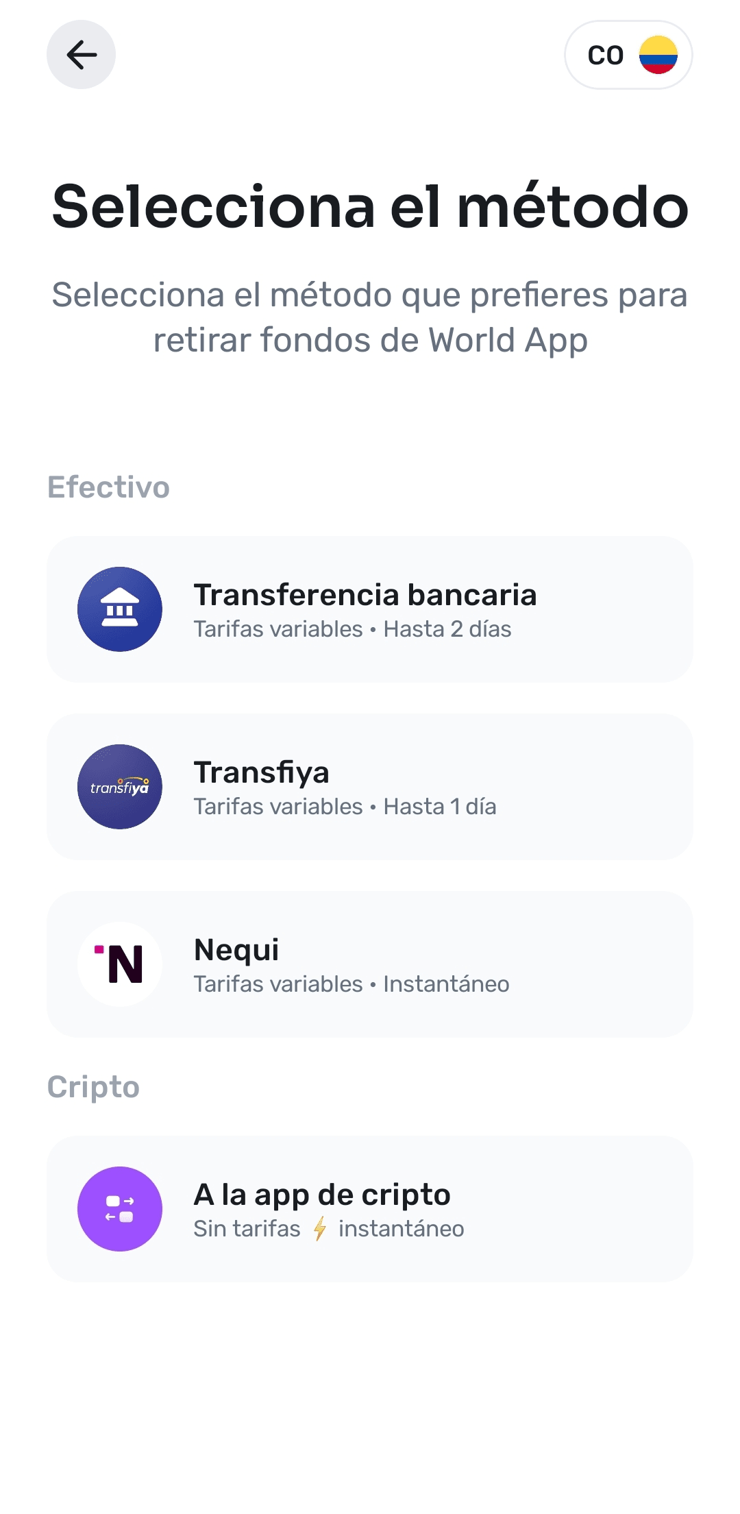 Per utilizzare il nuovo metodo di prelievo da World App a Nequi in Colombia, è necessario seguire una procedura che prevede la conversione delle criptovalute (Worldcoin, WLD) in pesos colombiani (COP) e il loro successivo trasferimento sul tuo account Nequi. Di seguito spiego i passaggi dettagliati in base alle informazioni disponibili: