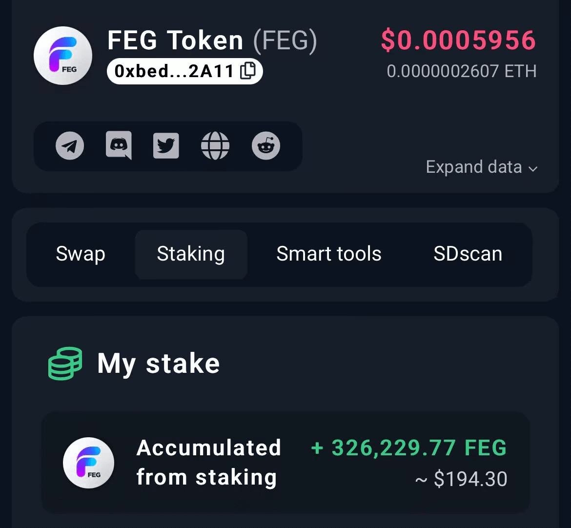 token feg con prezzo base, prestiti senza interessi e premi di staking illimitati
