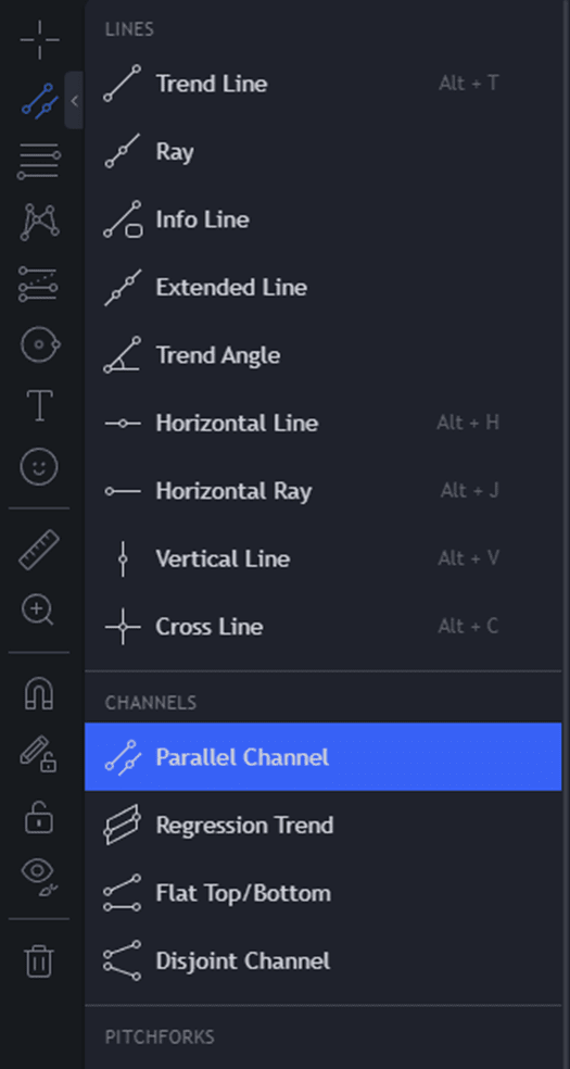 2️⃣ Utilizza lo strumento Parallel Channel di Binance per disegnare questi livelli.