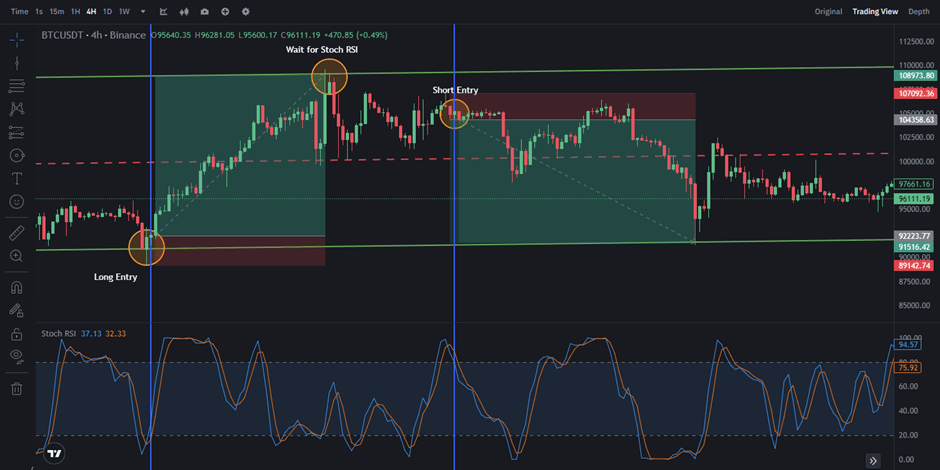 Vuoi un modo semplice ma efficace per acquistare e vendere al momento giusto? Canali paralleli + RSI stocastico è un'ottima strategia adatta ai principianti! Ecco come funziona. 👇