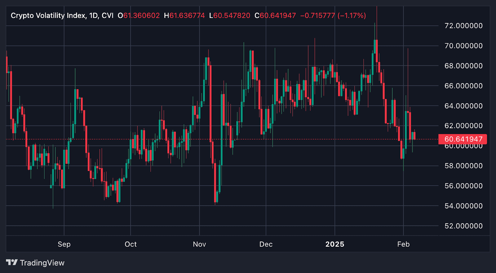 Indice di volatilità delle criptovalute (CVI). Fonte: TradingView