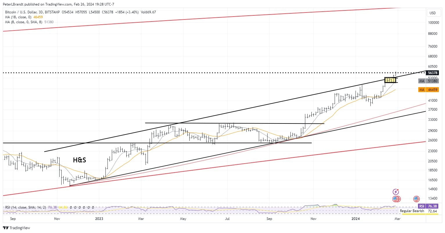 Grafico 3D BTC/USD. Fonte: Peter Brandt/X