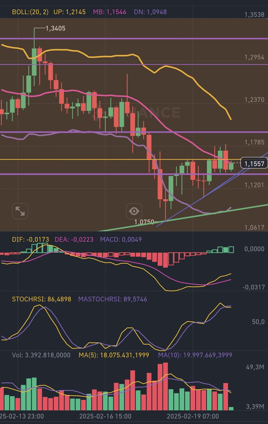 MA(5): 18.07M e MA(10): 19.99M, entrambe in tendenza ascendente, confermando la forza rialzista.