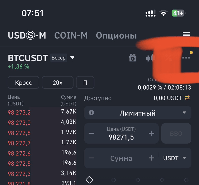 Esempio 2: BTC/USDT (future) (il prezzo è aggiornato al momento della stesura).