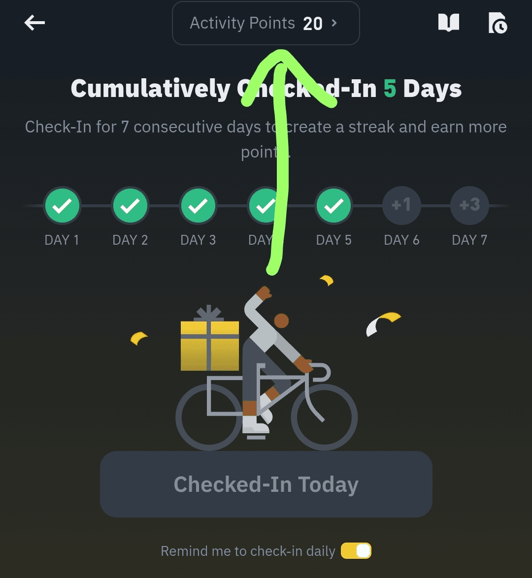 12) Per convertire i punti in sconto sulle commissioni, clicca sul testo dei punti attività nella parte superiore centrale della pagina delle attività