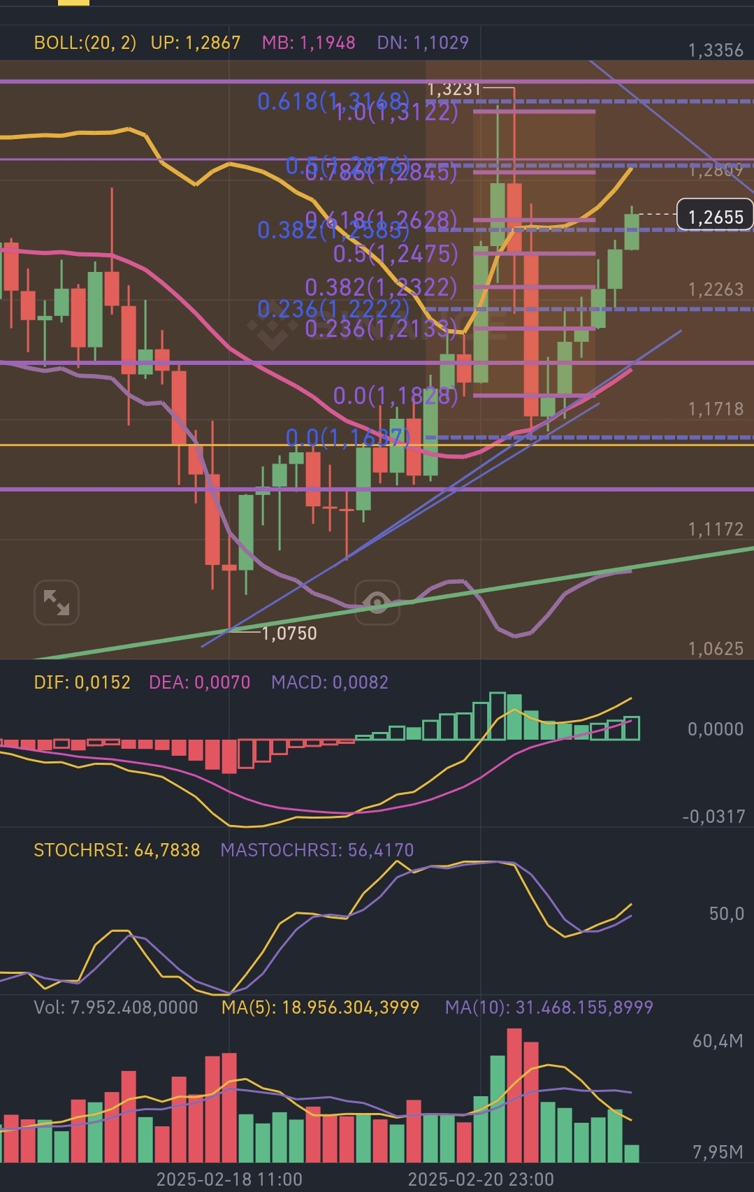 MA(5): 18.95M e MA(10): 31.46M, entrambe in aumento, riflettono una solida tendenza rialzista.