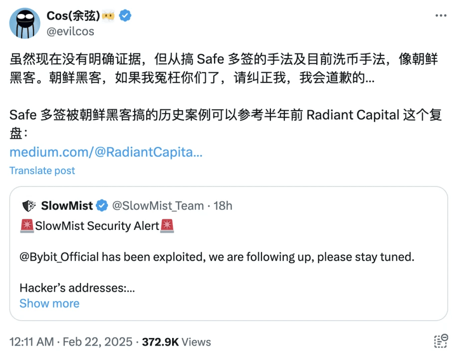 Dopo l'incidente, Slow Mist ha immediatamente ipotizzato che l'attaccante fosse un hacker nordcoreano, basandosi sulle tecniche utilizzate per ottenere l'accesso alla multi-firma Safe e per il riciclaggio di denaro.