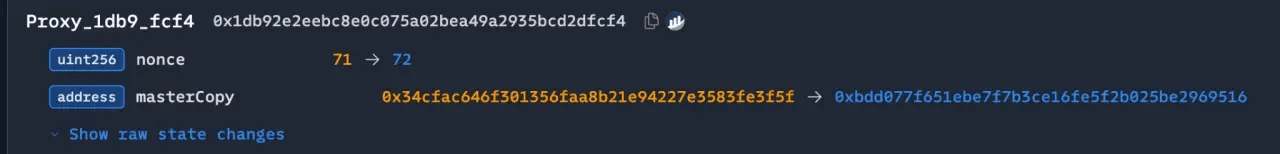 Dal punto di vista delle tecniche di attacco, l'incidente di hacking di WazirX e l'incidente di hacking di Radiant Capital hanno somiglianze con questo attacco; tutti e tre gli eventi hanno avuto come obiettivo i portafogli multi-firma Safe. Per l'incidente di hacking di WazirX, l'attaccante ha anche distribuito in anticipo un contratto di implementazione malevolo e ha firmato la transazione tramite tre proprietari, utilizzando DELEGATECALL per scrivere un contratto di logica malevola nello STORAGE 0, sostituendo il contratto Safe con un contratto di implementazione malevola.
