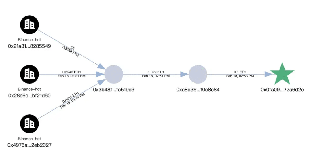 Tracciando, si è scoperto che i fondi iniziali provenivano da Binance.