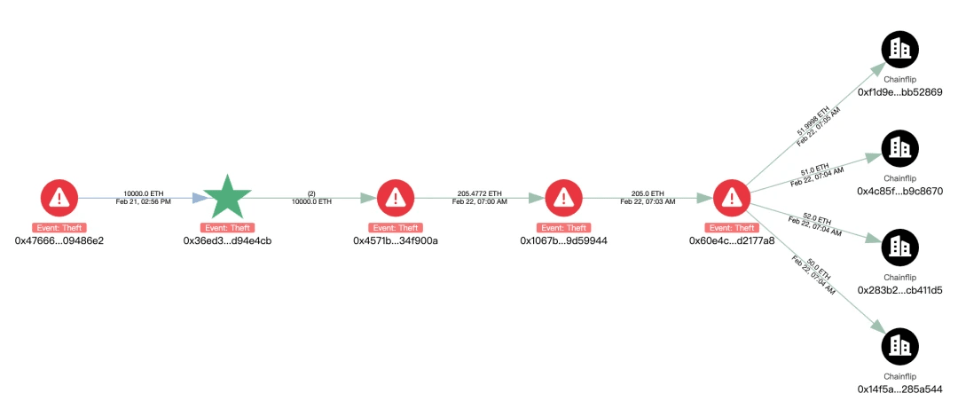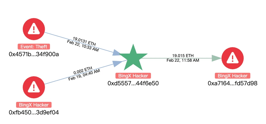 L'analisi con MistTrack ha anche rivelato che l'indirizzo dell'hacker di questo evento è correlato agli indirizzi degli hacker di BingX e Phemex: