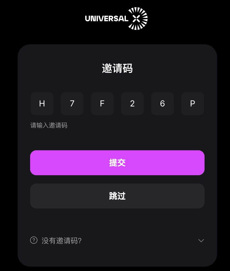 1. Registrazione. Vai al sito ufficiale: https://universalx.app?inviteCode=H7F26P, clicca in alto a destra su “login”, scegli il wallet di Metamask, firma con il wallet, inserisci il codice invito H7F26P (inserendo il codice invito H7F26P otterrai punti extra), clicca su “invia”, e firma con il wallet.