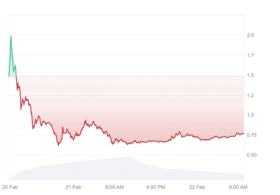 - Successivamente, il prezzo è crollato del 67%, passando rapidamente da $1.90 a $0.66