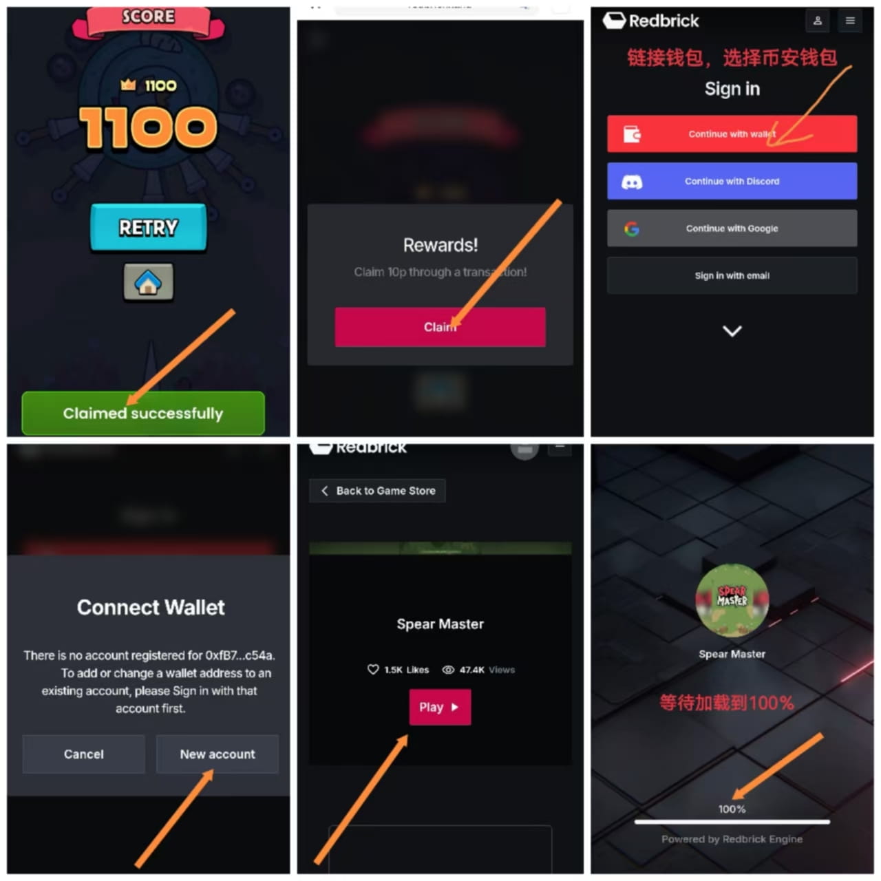 2. Dopo aver creato, entra nel compito di gioco, poi clicca su play al centro dello schermo e aspetta che il caricamento sia completato al 100%, dopo aver giocato clicca su Claim per ricevere, poi firma per tornare a verificare il compito. (Deve essere firmato, se appare 'Claimed successfully' hai ricevuto con successo)