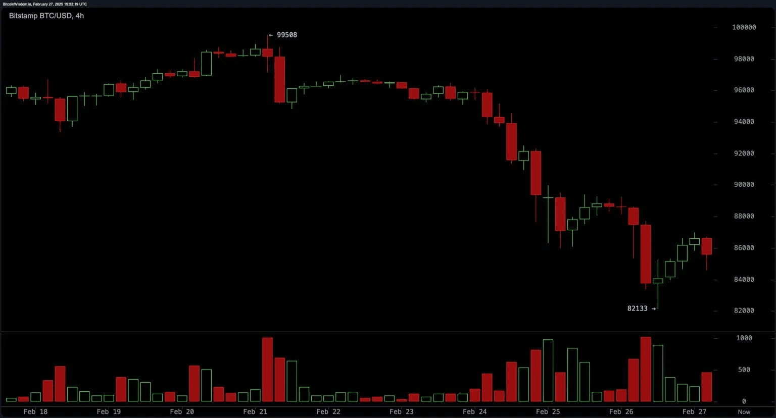 Grafico BTC/USD 4H tramite Bitstamp del 27 febbraio 2025.