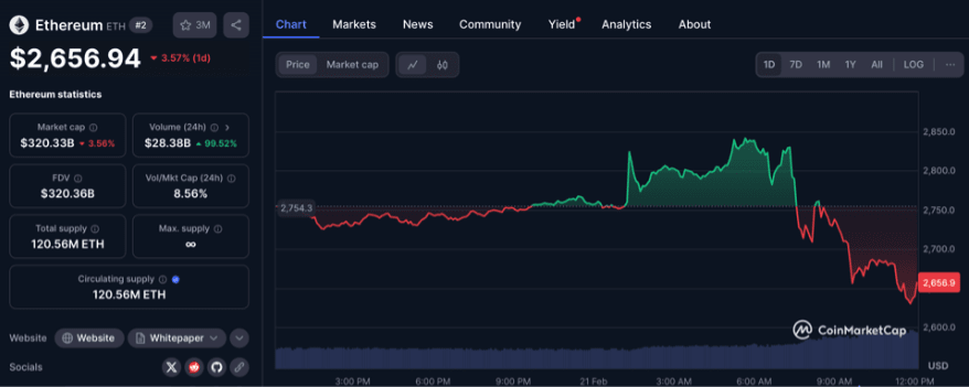 $ETH è sceso del 4,2% da $2,828 a $2,708 nel giro di pochi minuti dall'annuncio.