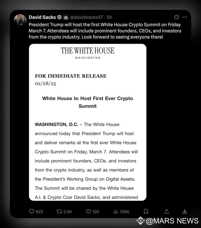Secondo i dati di PANews, la Casa Bianca intende tenere il suo primo summit sulle criptovalute il 7 marzo. Questo evento segna un passo significativo nella collaborazione del governo degli Stati Uniti con il settore in rapida evoluzione delle valute digitali. L'obiettivo del summit è riunire le principali parti interessate di diversi settori per discutere il futuro delle criptovalute e il loro impatto sull'economia. L'iniziativa riflette l'importanza crescente delle valute digitali nei sistemi finanziari globali e la necessità di un dialogo completo sulle questioni normative e di innovazione.