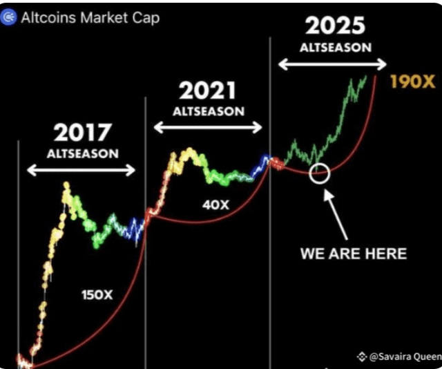 Il mercato delle criptovalute sta mostrando forti segnali che un esplosivo rally degli altcoin potrebbe essere dietro l'angolo. Con Bitcoin ($BTC) che sta accumulando slancio per una potenziale impennata verso $200,000, il mercato più ampio appare pronto per un altro trend parabolico al rialzo, simile ai movimenti straordinari visti nel 2021. Il recente calo ha preparato il terreno per una significativa rottura, e i prossimi cinque giorni potrebbero essere cruciali per gli investitori strategici.