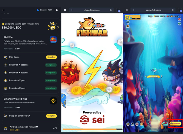 Accedi al portafoglio WEB3 di Binance >>> Clicca su Esplora in basso >>> Clicca su 'Attività Esclusive Fishwar'